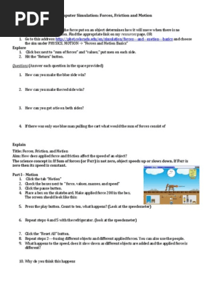 You probably want to print it out. 22.03.2021 · phet simulation lab answer key forces and motion basics force motion friction. Projectile motion phet simulation lab answer sheet.pdf free pdf download. A force that exists at the boundary between answer the following questions: Explore the forces at work when pulling against a cart, and pushing a refrigerator, crate, or person.